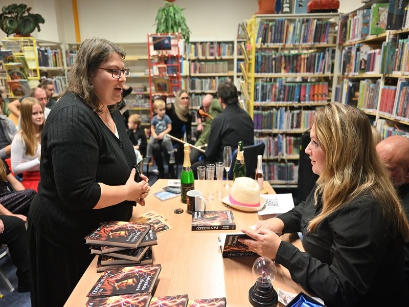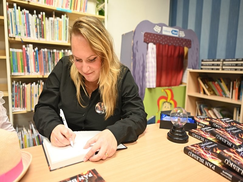 Spisovatelka Michaela Hánová v knihovně pokřtila svou knihu Pán blesků, první díl historické trilogie o geniálním vědci Nikolu Teslovi a jeho ne příliš známém životě v Praze. Hudební doprovod zajistila kapela Interitus.